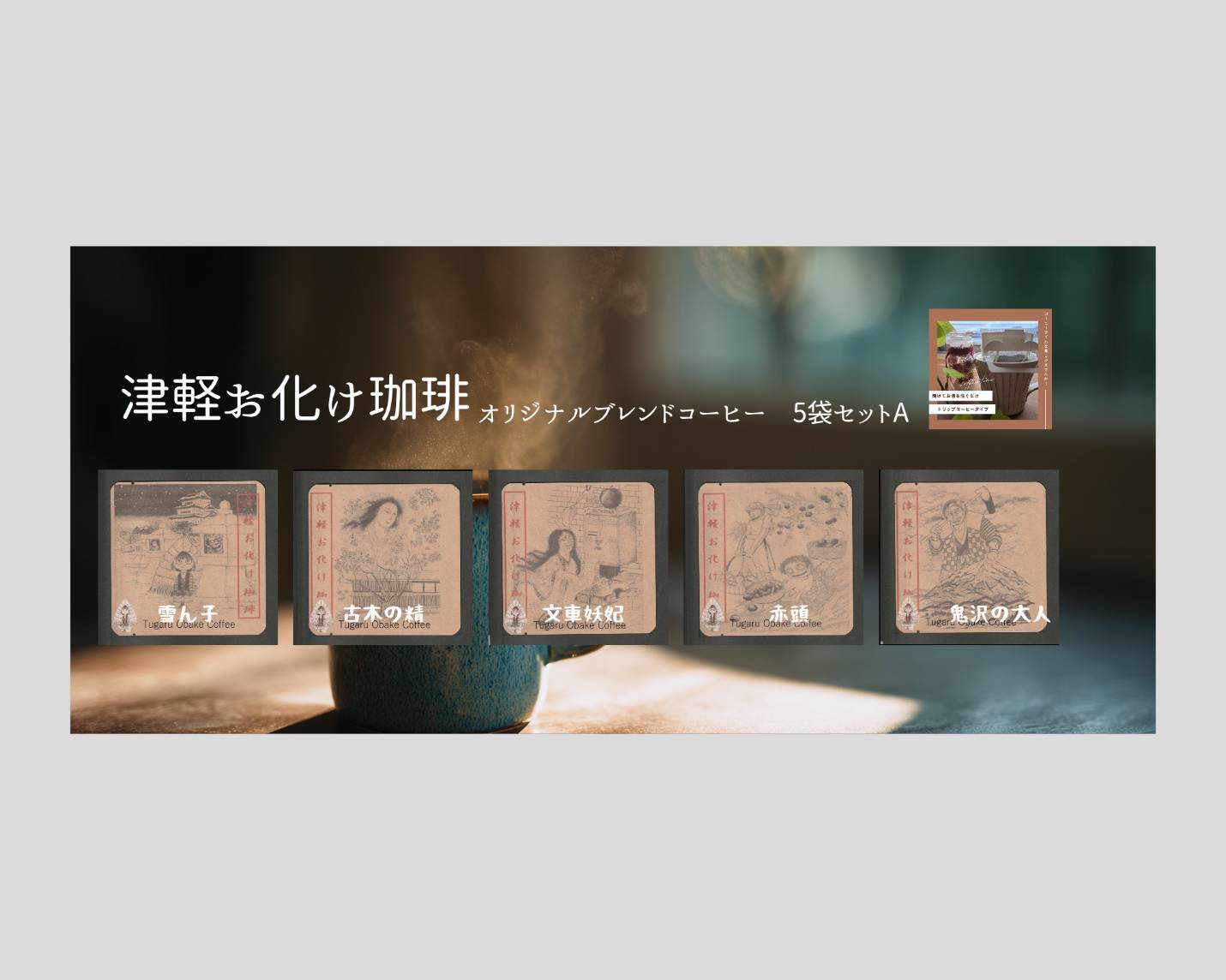 津軽お化け珈琲オリジナルブレンドコーヒー(5袋セット)セット-A