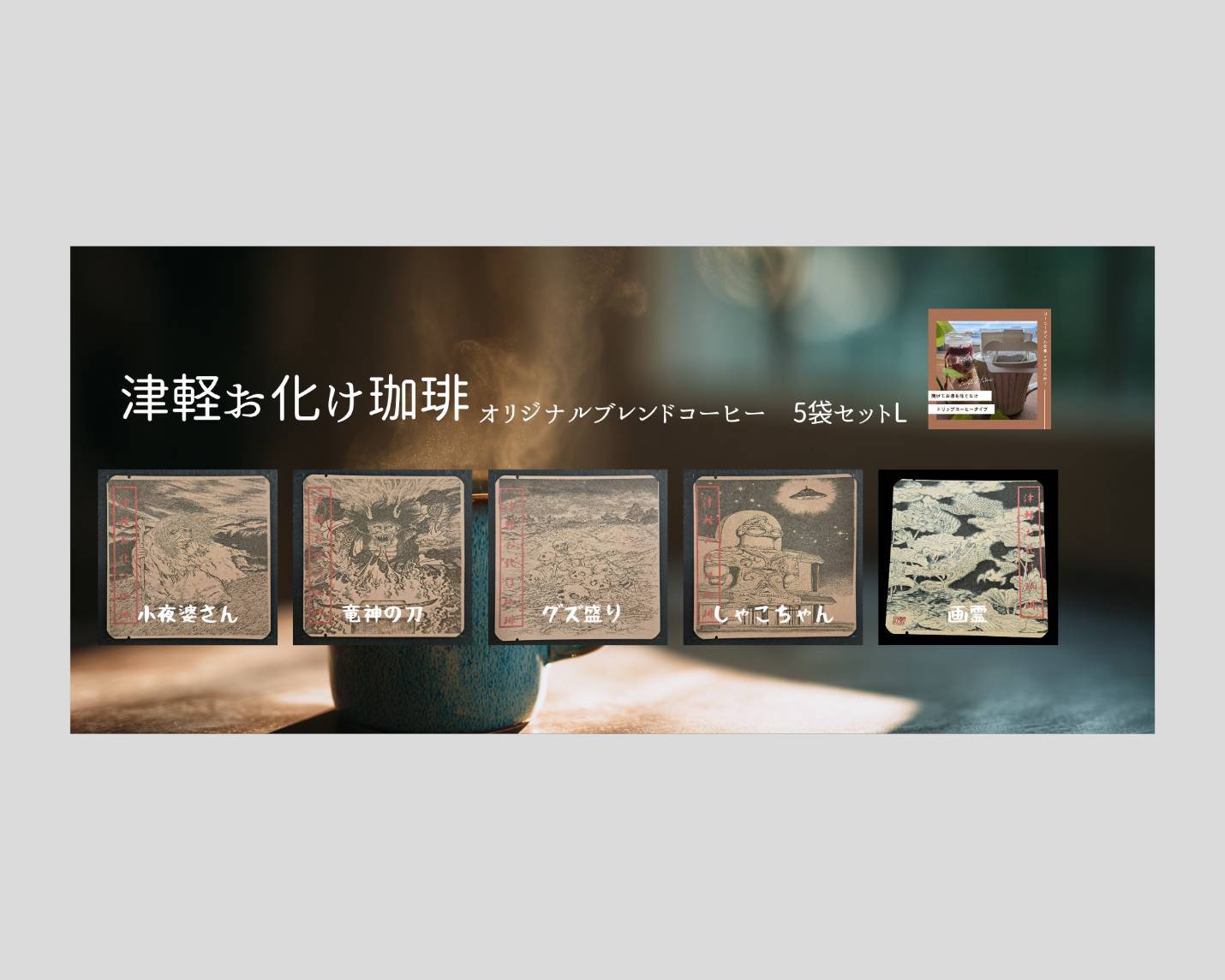 津軽お化け珈琲オリジナルブレンドコーヒー(5袋セット)セット-L